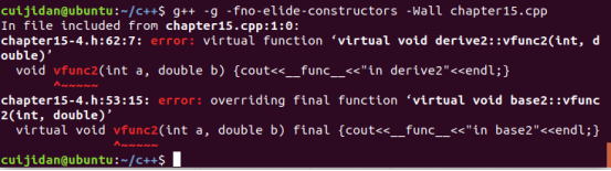 如果将基类中的vfunc2加上final关键字,那么子类将不能对final进行重写