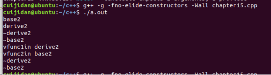 virtual void vfunc1(){cout<<__func__<<"in derive2"<<endl;}