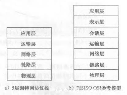 七层模型中的应用层、表示层和会话层一般都由各个应用程序来实现,所以可以统一成应用层。所以又出现了五层网络