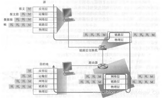 高层协议(如HTTP、FTP、TCP、UDP、DNS或IP)交换的消息最终都被封装在链路层帧中,这些帧通过以太网电缆等物理介质传输。