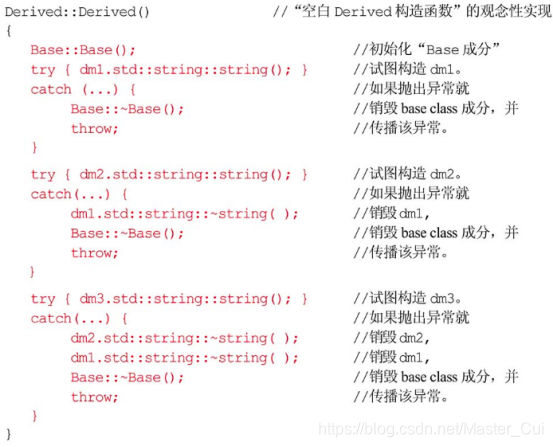 构造函数和析构函数也不要声明为内联,因为在继承体系中,因为构造函数和析构函数中有隐含成员的创建和销毁,以及基类构造函数和析构函数的调用,所以,构造函数和析构函数往往比表面看起来更长。像下图这样