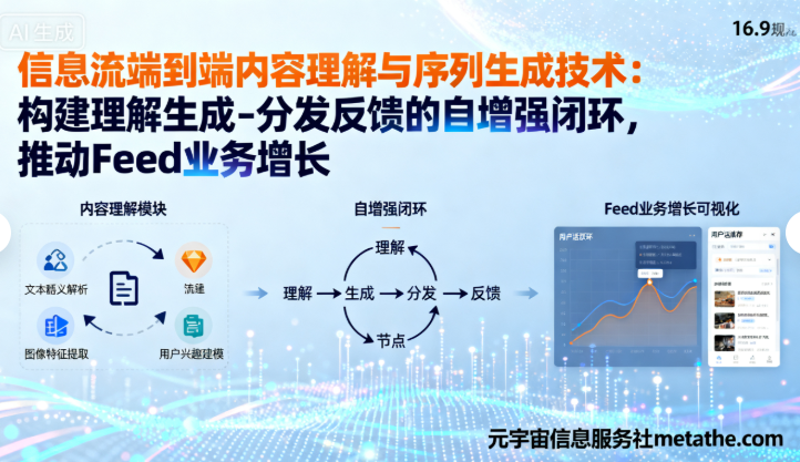 信息流端到端内容理解与序列生成技术是百度2025年发布的十大科技前沿发明之一,核心通过“理解生成-分发反馈-再理解生成”的自增强闭环,突破传统推荐系统中内容理解与分发模型割裂的局限,推动Feed业务增长并落地多场景。以下从技术原理、架构创新、闭环机制、应用案例及行业价值五方面系统解析: