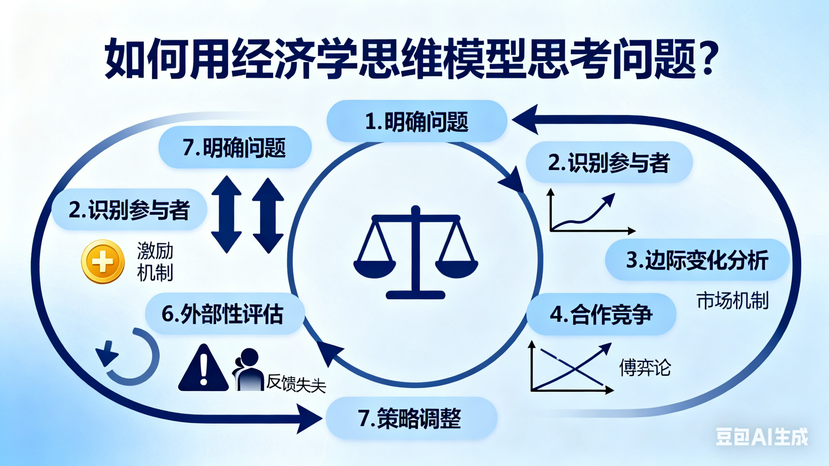 本文将系统拆解八大核心经济学思维模型,构建 “问题识别 — 分析框架 — 策略制定 — 反馈优化” 的全流程决策体系,并通过企业新产品推出的实战案例,展示如何将抽象模型转化为可落地的行动方案。无论是个人生活规划、企业经营管理,还是公共政策制定,这套思维工具都能帮助我们摆脱直觉误区,实现更具远见的理性决策。