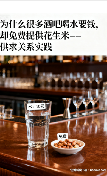 酒吧的定价策略本质是通过控制互补品(花生米)与替代品(水)的供需关系,优化核心产品(酒水)的消费场景。免费花生米是“诱饵”,吸引顾客并刺激酒水需求;收费水是“门槛”,过滤低价值消费同时强化酒水价值。这一策略巧妙利用了供求关系的弹性差异、成本收益结构以及消费者心理,实现了利润最大化。