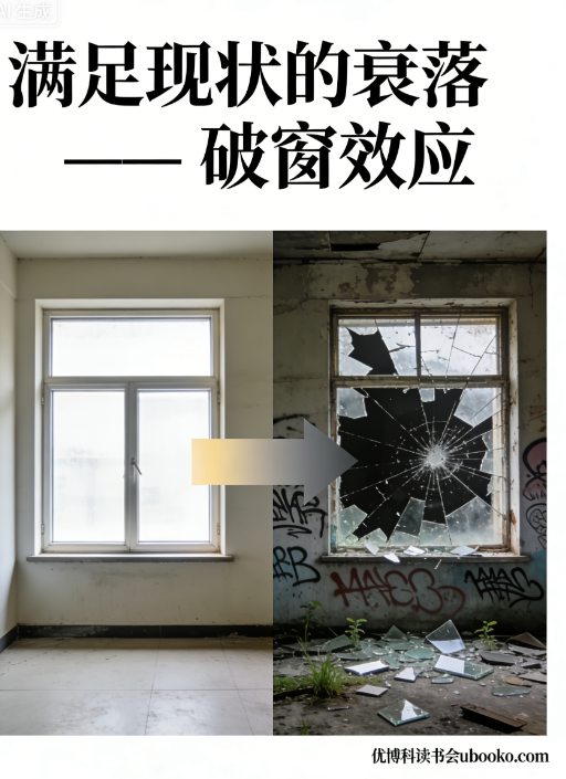 这个源于社会学的理论,恰恰戳中了 “满足现状者” 的致命弱点:衰落从来不是突然降临的,而是从第一个被忽视的 “小漏洞” 开始 —— 一次敷衍的工作、一个妥协的标准、一个放任的小毛病,都会成为侵蚀竞争力的 “破窗”。满足现状的人,往往对这些 “破窗” 视而不见,最终在不知不觉中被时代淘汰。