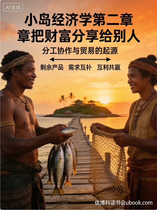这件事让小岛的“财富规则”彻底成型。艾伯的剩余鱼变成了“可借贷的资本”,贝克和查理通过“借贷”获得了发展的机会,而“多还的鱼”(利息)则让艾伯愿意承担风险、分享财富。很快,岛上出现了新的分工:艾伯擅长储存和规划,成了“出借者”;贝克专注改进工具,造出了更大的木筏;查理则研究如何腌制鱼干,让财富更易保存。