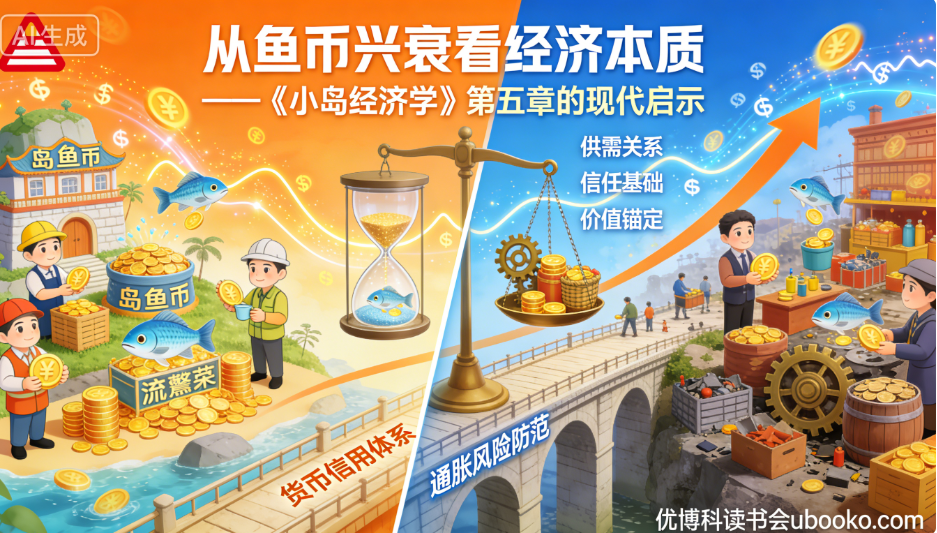 《小岛经济学》第五章以“鱼币”的诞生、繁荣、危机与重生为主线,用寓言形式演绎了货币化经济的完整生命周期。从鱼干成为通用货币的共识凝聚,到纸券滥发引发的通胀灾难,再到环岛联盟的规则重建,小岛的每一次经济波动,都精准映射着现代经济的核心命题。拨开寓言的外衣,这些原始实践为现代经济运行提供了六大底层启示。
