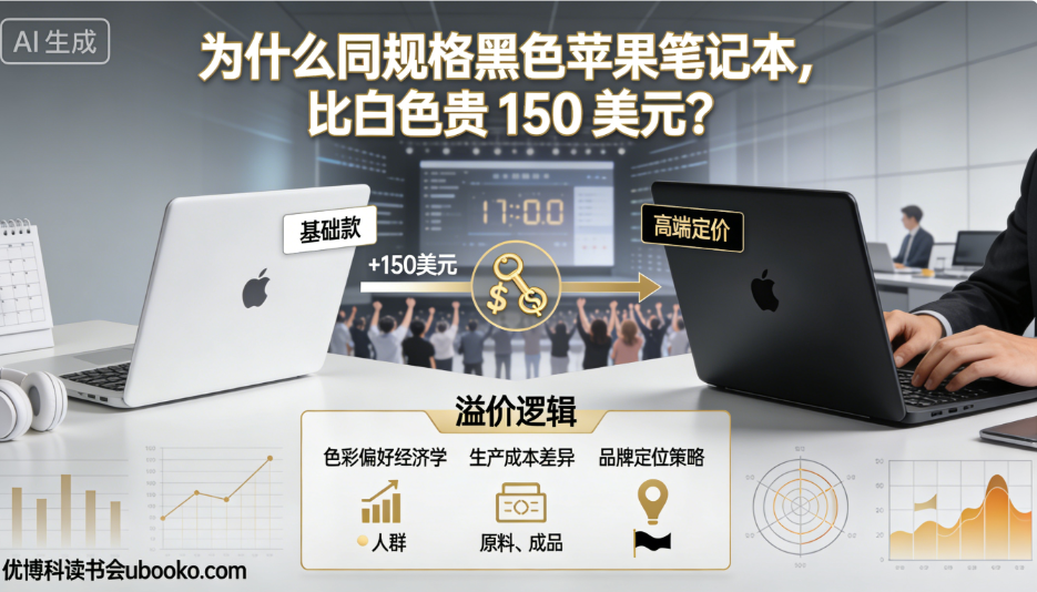 关键洞察:黑白笔记本硬件完全相同,差价与生产成本无关,纯粹是苹果利用供需关系和消费者心理的定价策略