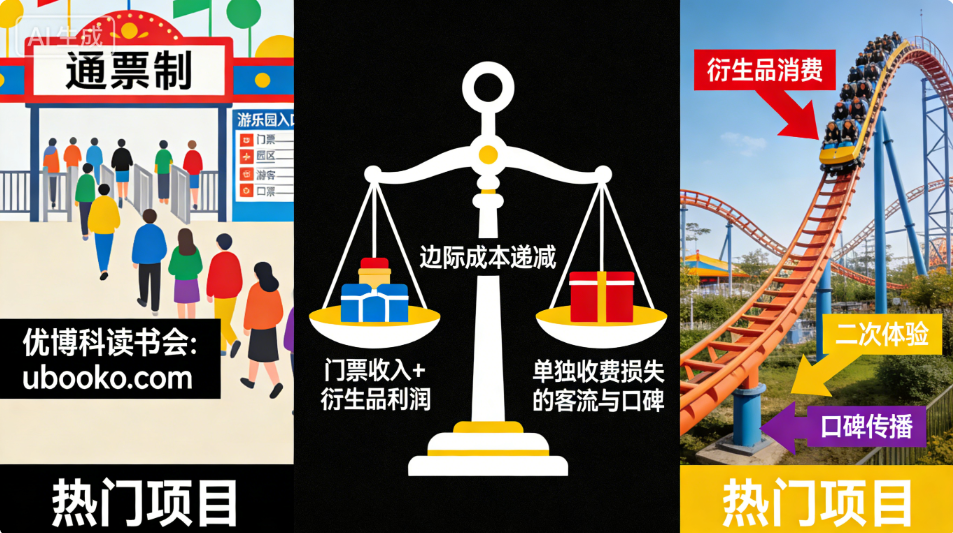 从经济学视角看,这是 “捆绑定价”“规模经济”“消费者心理” 的经典应用 —— 游乐园真正售卖的不是单个项目的体验,而是 “完整的欢乐之旅”,而热门项目正是这场旅程中最核心的 “引流工具” 与 “价值载体”,其最大的价值不在于单独收费,而在于撬动整个园区的长期盈利。
