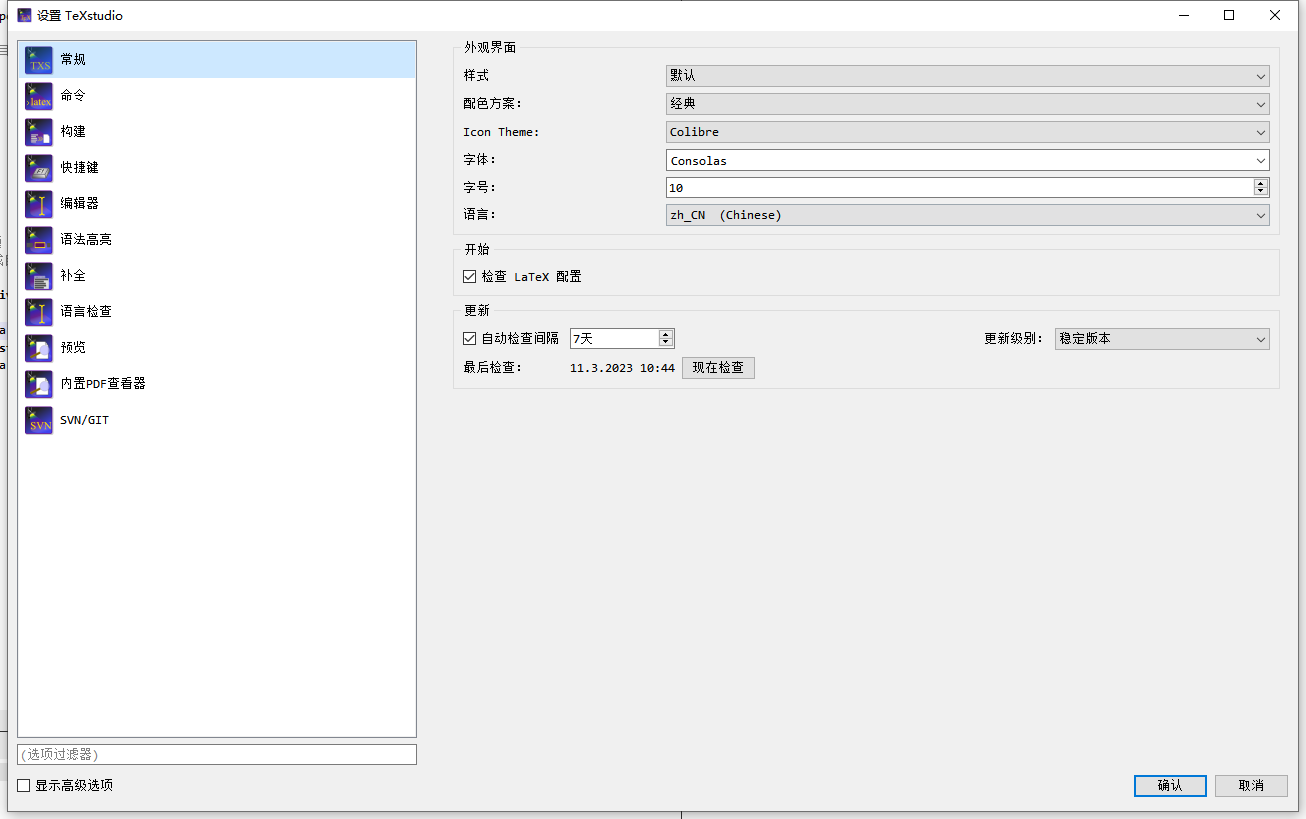 TEX studio 设置