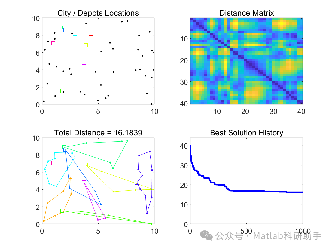 对于每个仓库及其分配到的客户点集合,求解一个TSP问题。计算每个推销员从仓库出发,访问其负责的客户点,最终返回仓库的最短路径距离。