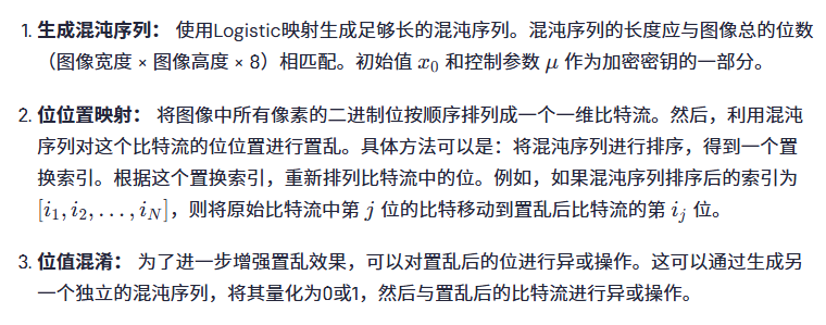 位级置乱是加密过程中的关键步骤,旨在打破图像像素间的空间相关性。本算法采用基于混沌序列的位级置乱方法。