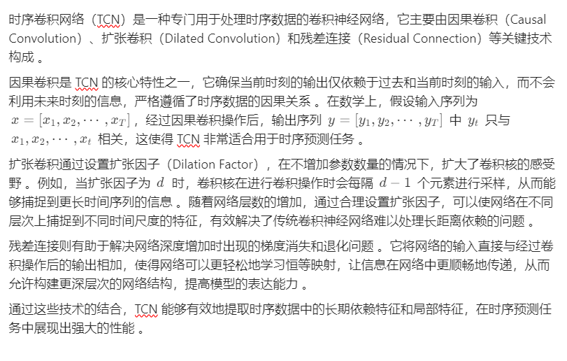 随着 “双碳” 目标的深入推进,风电在能源领域的地位愈发重要 。但风电功率的不稳定特性使得电力系统在发电计划安排、调峰调频以及电力市场交易等方面面临诸多难题 。传统的风电功率预测方法,如物理方法依赖精确的气象数据和风机参数,计算复杂且适应性较差;统计方法在处理非线性、非平稳的风电数据时,预测精度难以满足实际需求 。近年来,深度学习算法在时序数据预测领域取得了显著成果,为风电功率预测提供了新的思路和方法 。时序卷积网络(TCN)通过独特的结构设计,有效解决了传统卷积神经网络在处理时序数据时存在的信息泄露、长距离依赖捕捉困难等问题,在时序数据建模方面表现出色,将其应用于风电功率多变量输入单步预测具有重要的研究价值和应用前景。