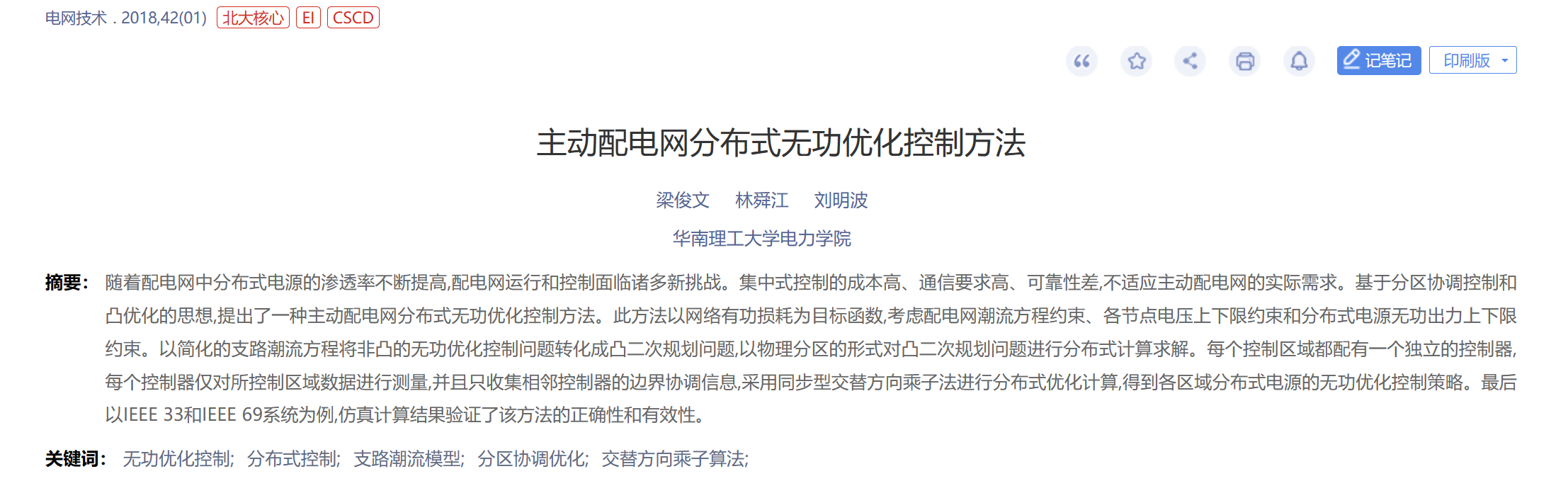 [2]梁俊文,林舜江,刘明波.主动配电网分布式无功优化控制方法[J].电网技术,2018,42(01):230-237.DOI:10.13335/j.1000-3673.pst.2017.1331.