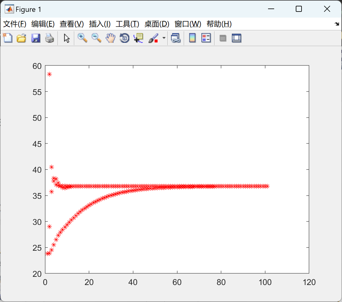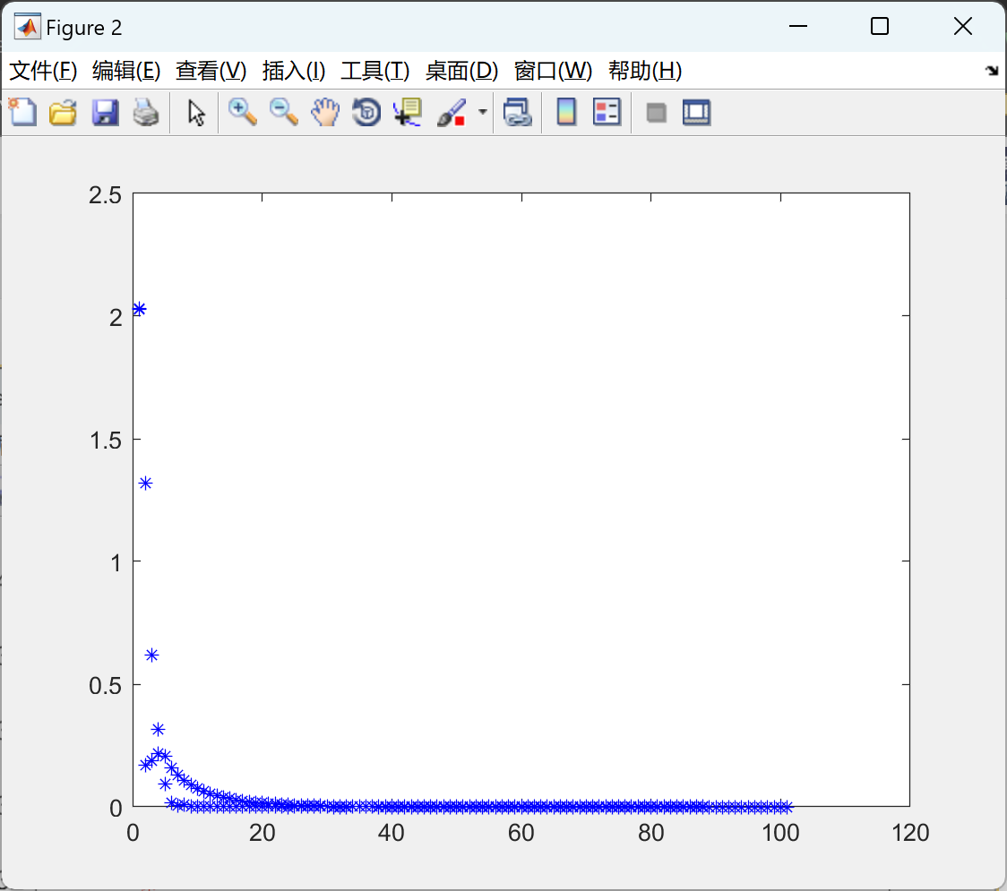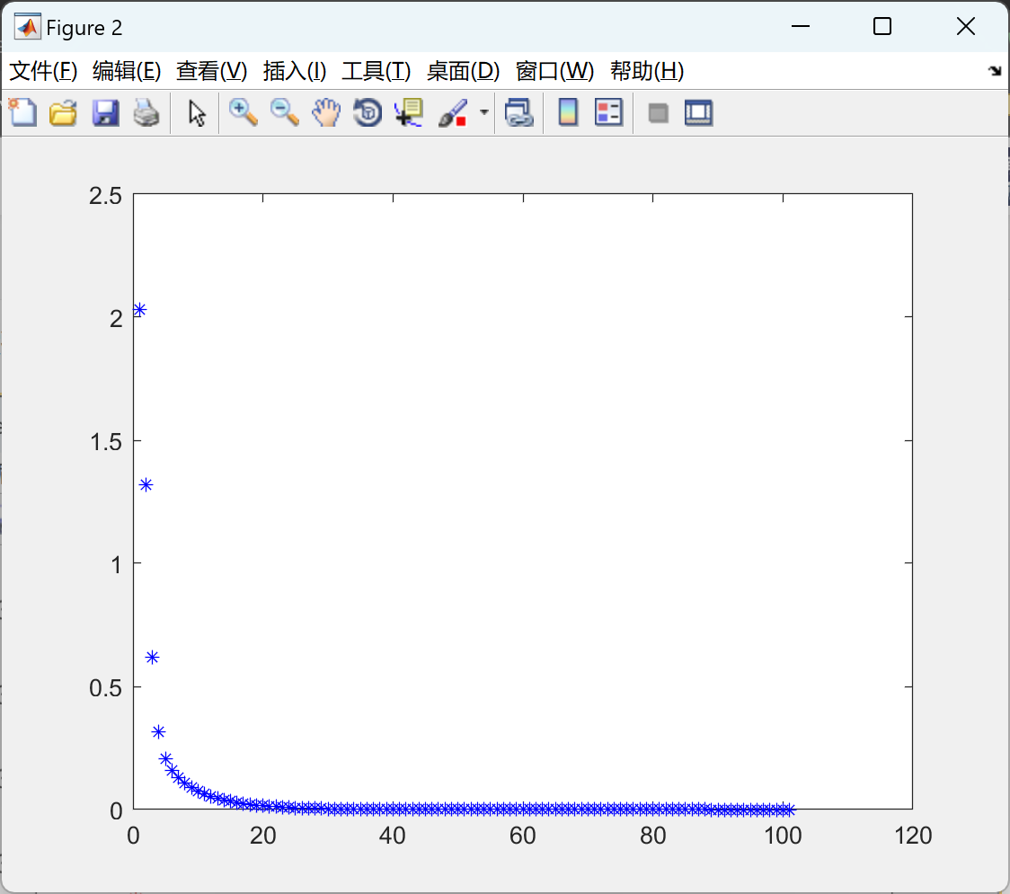 plot(1,norm(Xa-Xa_last,2)^2,'b*-');