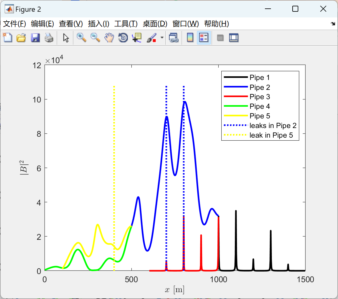 legend('Pipe 1','Pipe 2','Pipe 3','Pipe 4','Pipe 5','leak in Pipe 2');