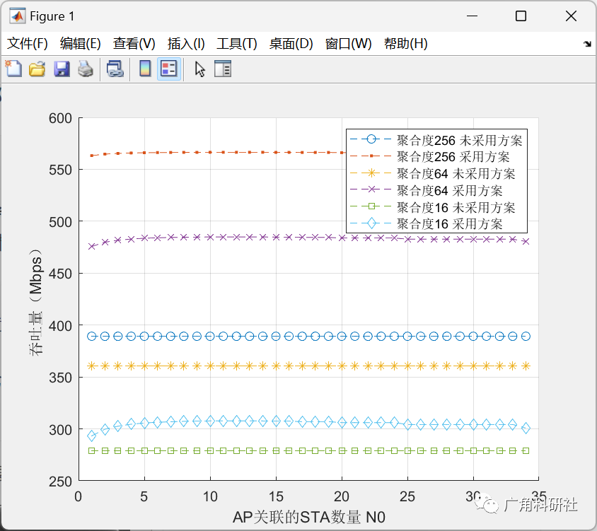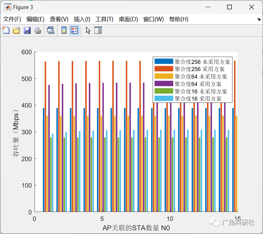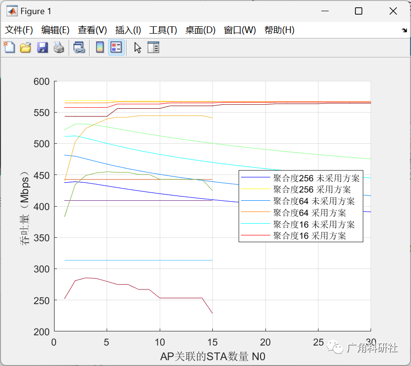 legend('聚合度256 未采用方案','聚合度256 采用方案','聚合度64 未采用方案','聚合度64 采用方案','聚合度16 未采用方案','聚合度16 采用方案');