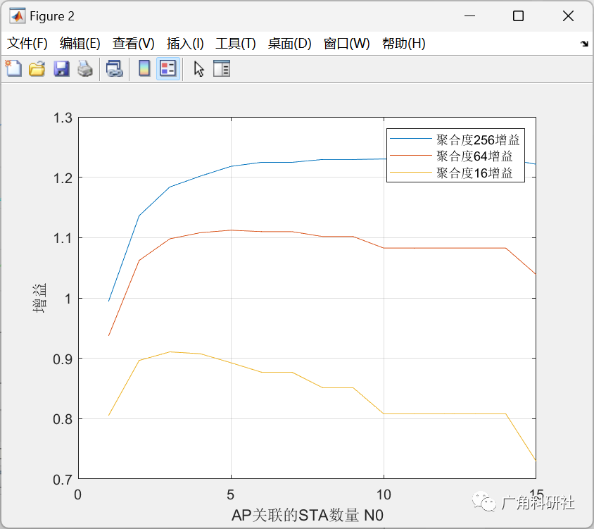 legend('聚合度256增益','聚合度64增益','聚合度16增益');
