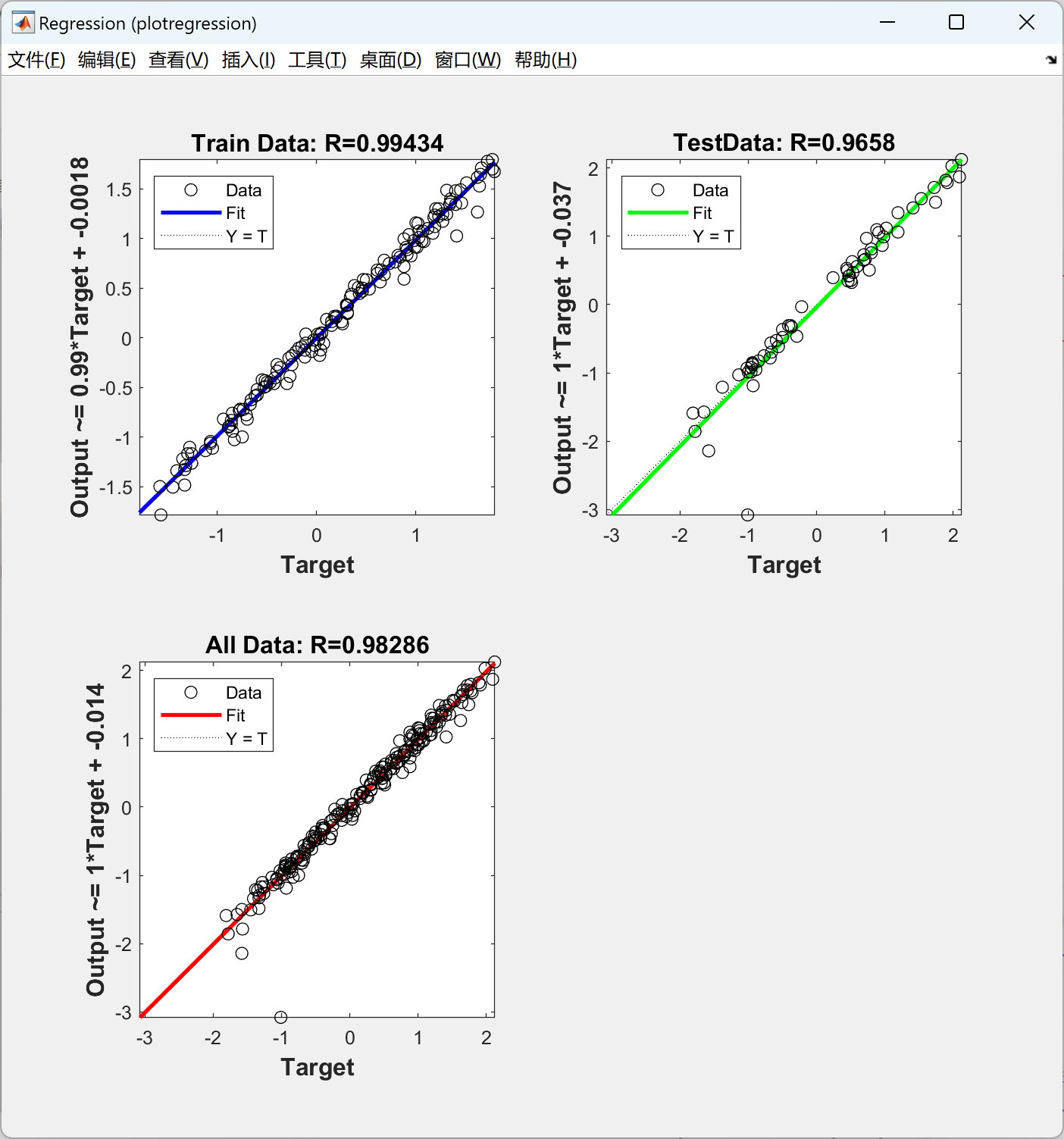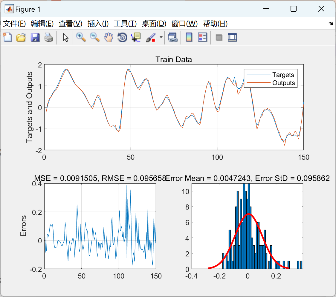 PlotResults(TrainTargets, TrainOutputs, 'Train Data');