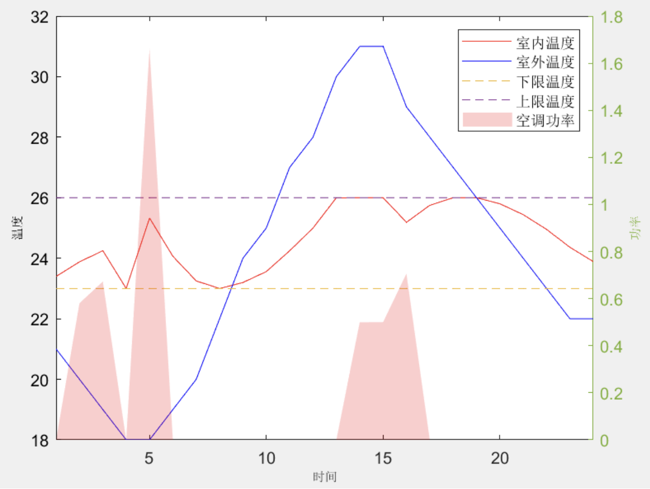 这个模型专注于研究楼宇,并以夏季制冷负荷为核心。通过充分利用楼宇的热储能特性,它构建了一个综合的楼宇微网优化调度模型,其中集成了需求侧虚拟储能系统。除此之外,该模型还能够精确确定最佳的光伏安装容量。采用改进的粒子群算法,该程序的优化目标是将购电费用和光伏安装成本之和最小化。以夏季制冷负荷为例,该模型确保在维持舒适温度的前提下,充分挖掘楼宇参与微网经济优化运行的虚拟储能潜力,从而在一定程度上削减了微网的运行成本。