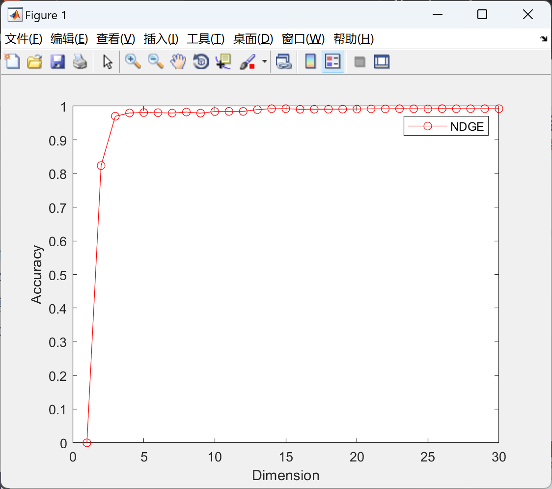 谈论一种应用于机器故障诊断的机器学习方法,其中涉及使用归一化判别图嵌入(NDGE)以实现数据的降维和特征提取,以更好地分类和识别故障模式。在这样的背景下,讨论“NDGE的最终投影矩阵”、“不同维度的准确率”及“每个样本对不同故障模式的概率”是非常合理的。
