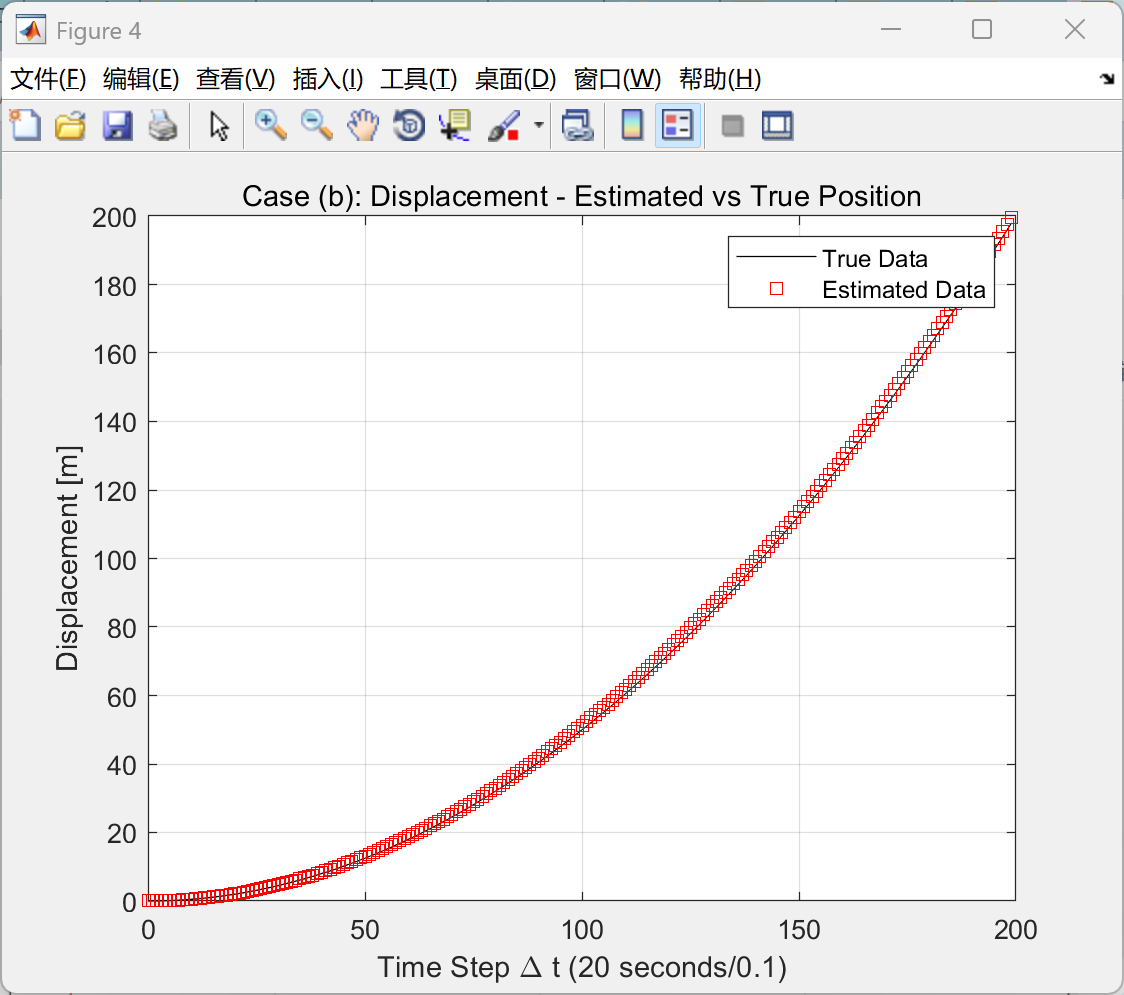 title('Case (b): Displacement - Estimated vs True Position')