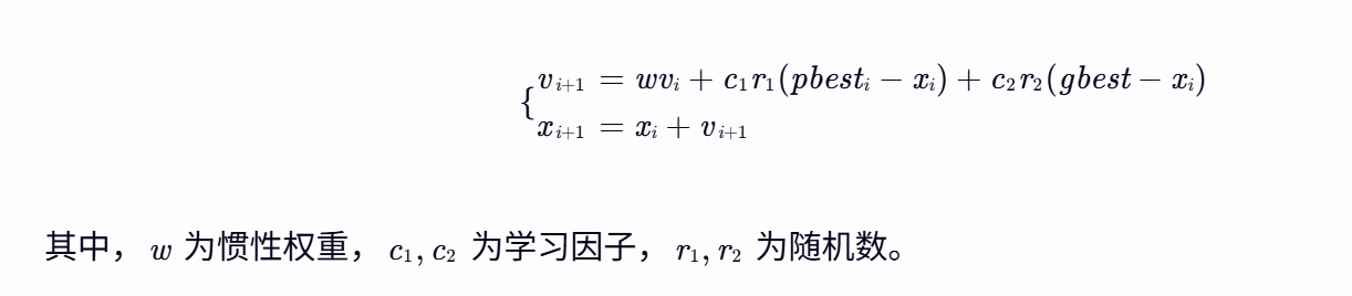 PSO算法通过模拟鸟群觅食行为,在解空间中搜索最优解。每个粒子代表一个候选解,其位置和速度通过个体最优解(pbest)和群体最优解(gbest)动态调整。