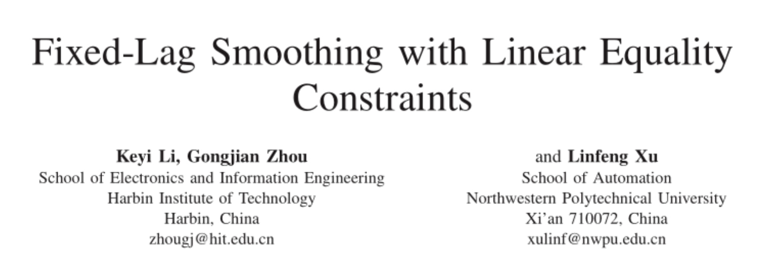 固定滞后平滑技术通过利用当前及未来固定长度(滞后L)的观测数据,对过去某时刻的状态进行优化估计,其精度通常高于实时滤波。在动态系统状态估计中,当系统存在线性等式约束(LEC)时(如目标运动中的速度与位置关系约束、多传感器数据一致性约束),直接应用无约束平滑算法会因忽略先验信息而导致精度损失。因此,研究带LEC的固定滞后平滑算法具有重要理论价值与工程意义。