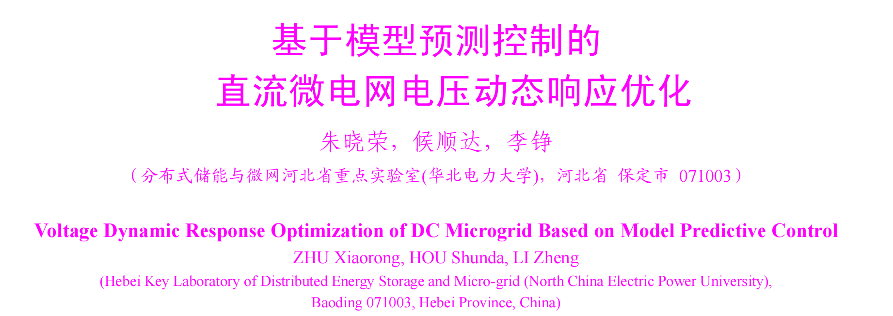 [1]朱晓荣,候顺达,李铮.基于模型预测控制的直流微电网电压动态响应优化[J].电网技术, 2020, 44(6):9.