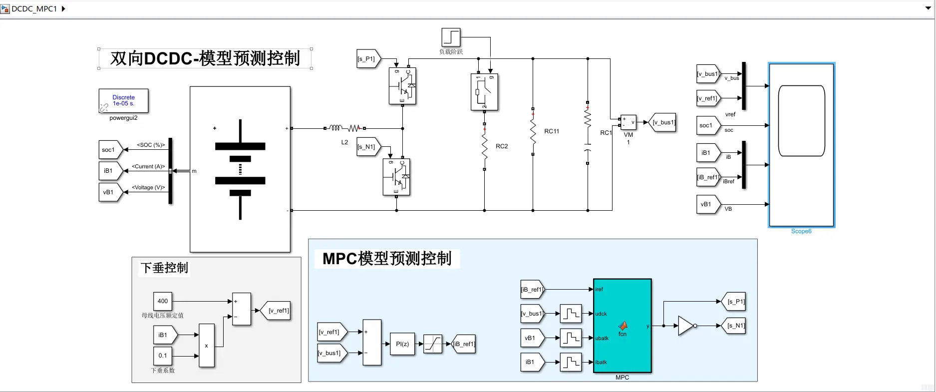 随着能源存储技术的快速发展,储能双向DCDC变流器在电力系统和新能源领域的应用日益广泛。本文旨在研究储能双向DCDC变流器的模型预测控制技术,特别是在负载调节中的性能表现。通过初级下垂控制、电压环PI控制和电流环模型预测控制的结合,实现系统的快速响应和稳定性能。