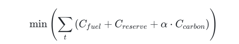 - 目标函数:最小化总成本(燃料成本、备用成本、碳排放成本)。