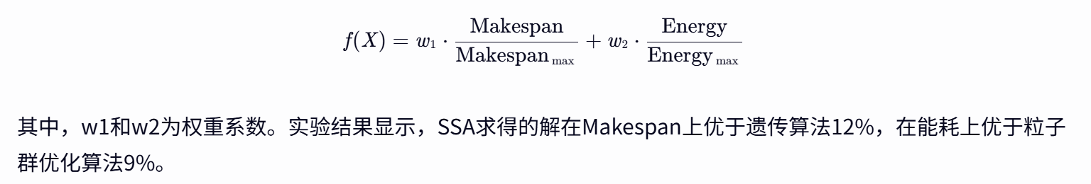 在某次实验中,SSA-NSGA-II在200代内找到的Pareto解集包含12个非支配解,而传统NSGA-II仅找到8个,且SSA的解在Makesspan与能耗上的均衡性更优。