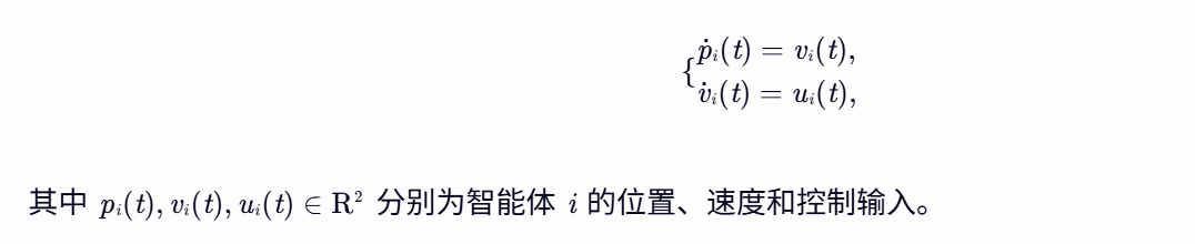 考虑由 n 个智能体组成的系统,每个智能体的动力学模型为二阶积分器: