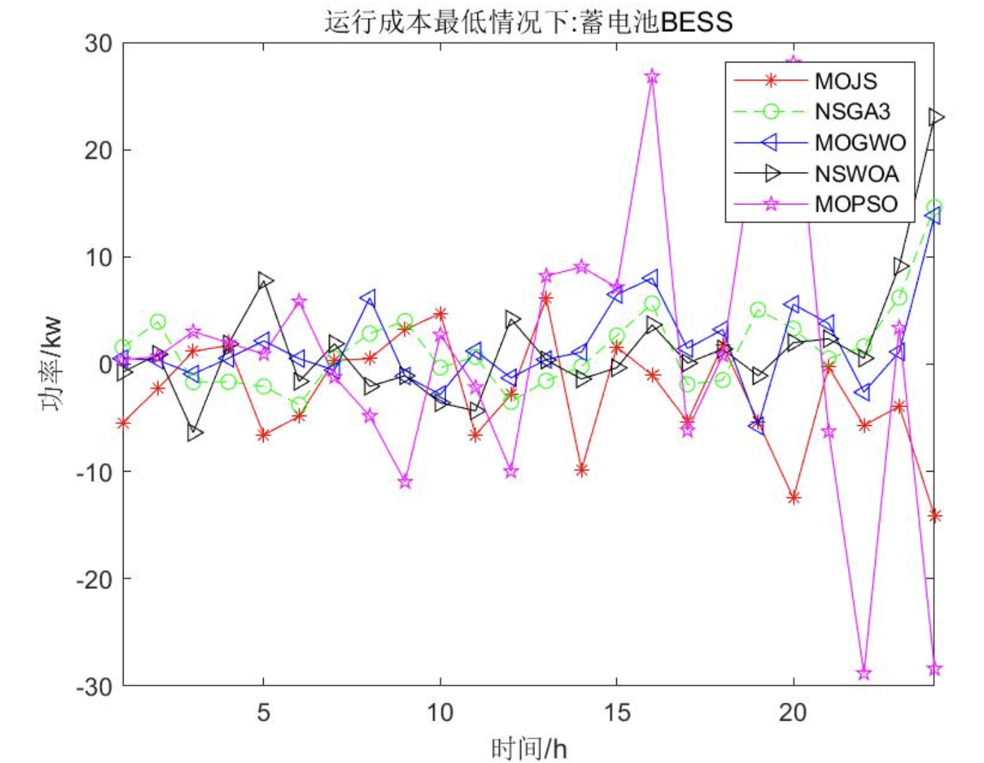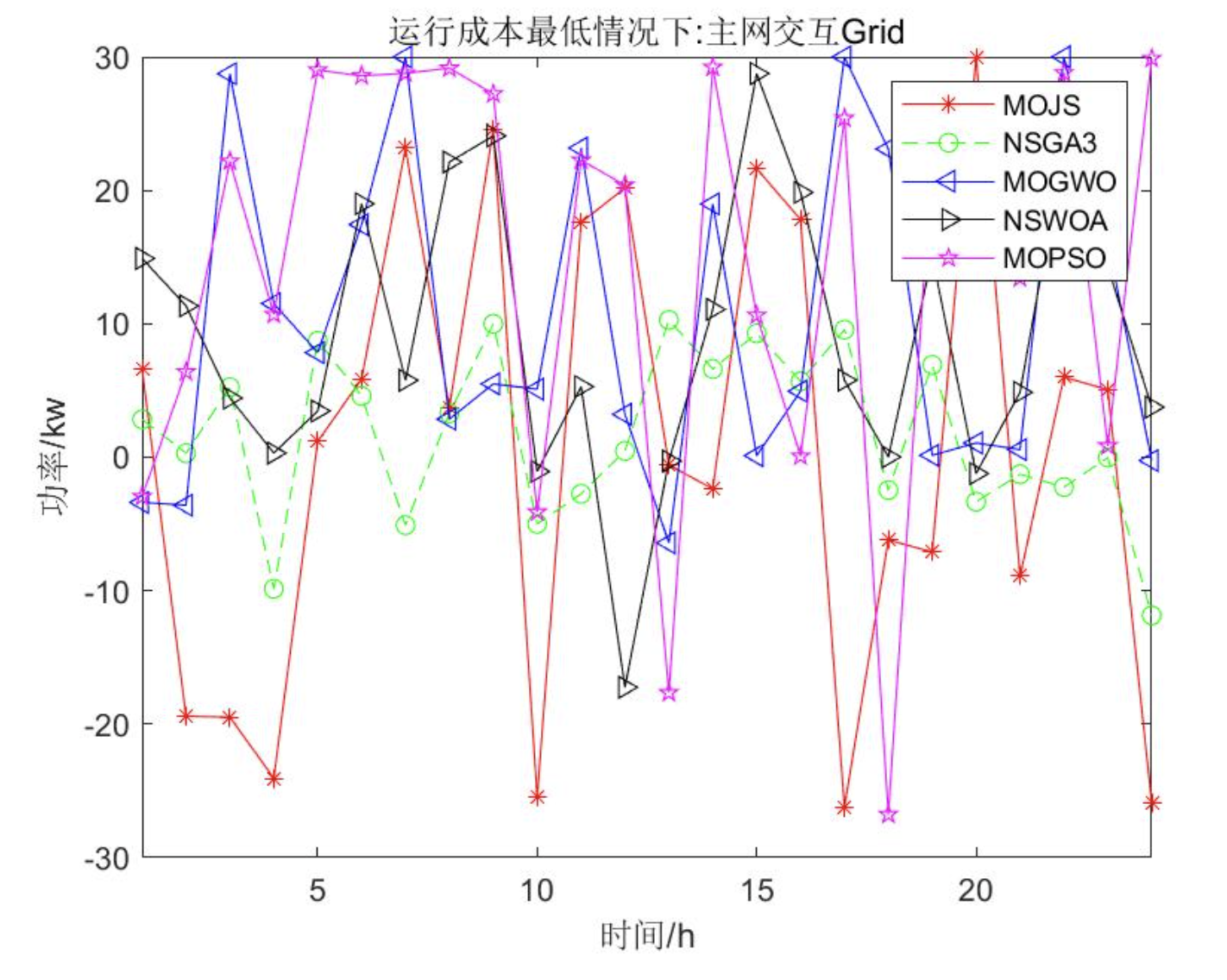 随着分布式能源的快速发展,微电网作为整合可再生能源的关键载体,其优化调度面临经济性、环保性、可靠性等多目标协同的挑战。本研究聚焦于五种多目标优化算法(多目标水母搜索算法MOJS、非支配排序遗传算法NSGA3、多目标灰狼优化算法MOGWO、基于非支配排序的鲸鱼优化算法NSWOA、多目标粒子群优化算法MOPSO)在微电网多目标优化调度中的应用,通过构建兼顾经济性、环保性、可靠性的多目标优化模型,结合MATLAB仿真验证算法在降低运行成本、减少碳排放、提升可再生能源利用率等方面的有效性,为微电网能量管理系统(EMS)的算法选型提供理论支持。