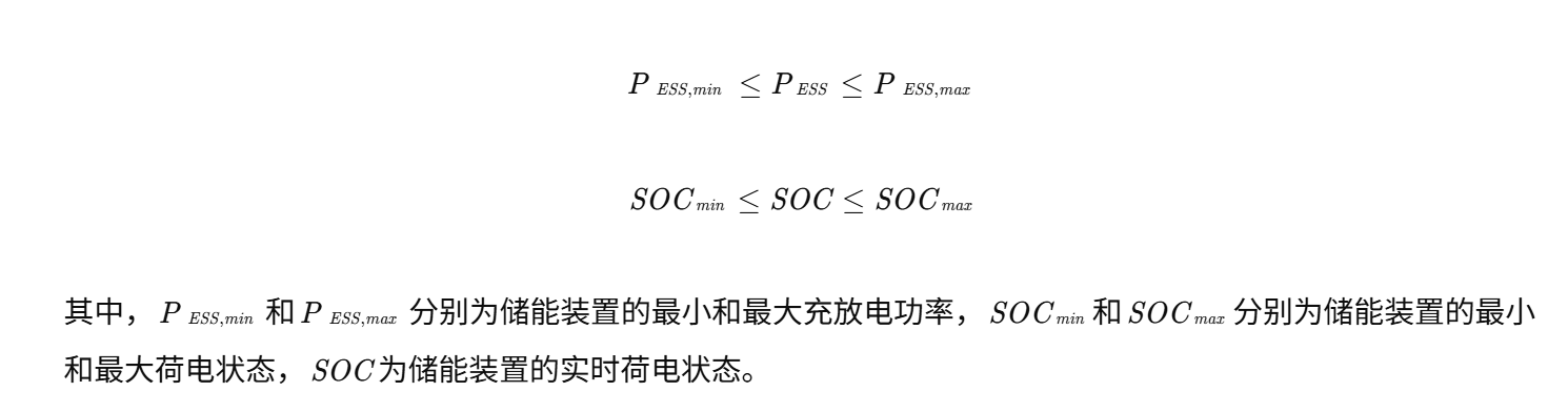 储能装置的充放电功率和荷电状态受到其容量和充放电特性的限制,即: