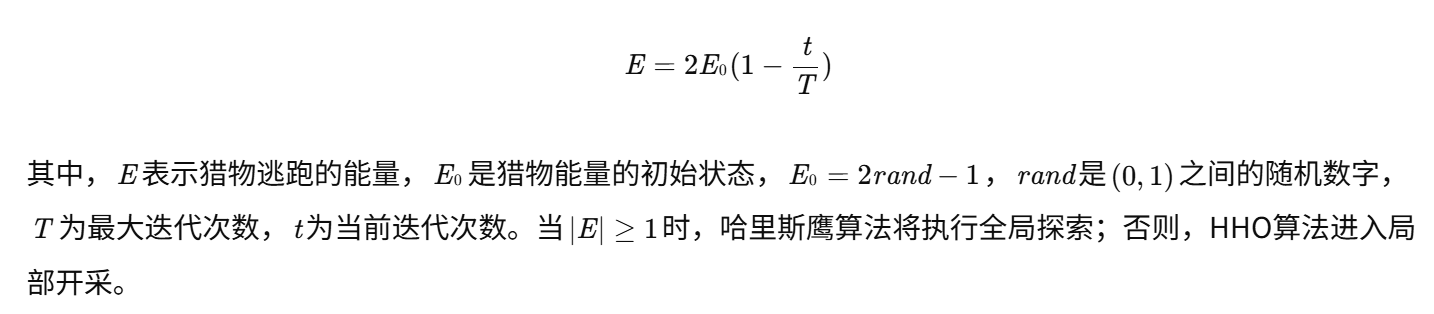 HHO通过猎物的能量方程实现从探索到开采的过渡,猎物逃跑的能量模型为: