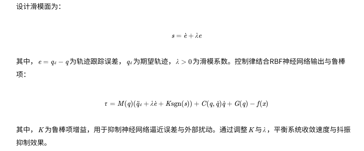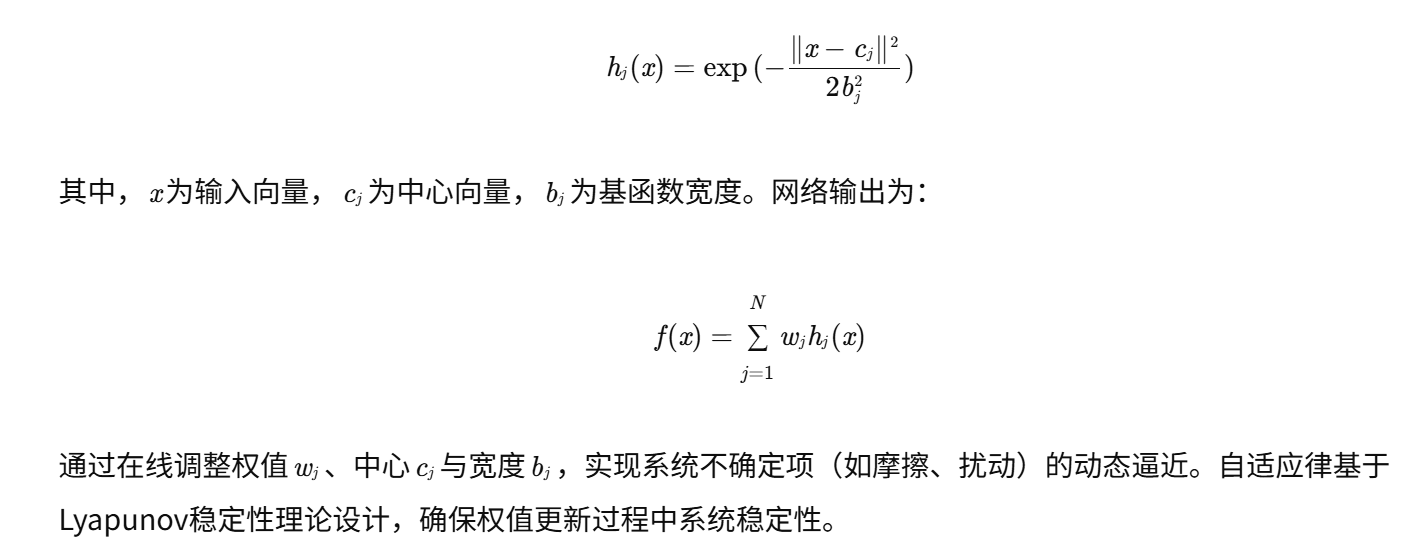 - 自适应RBF滑模控制(ARBF-SMC):结合RBF神经网络与滑模控制,动态补偿系统不确定性。