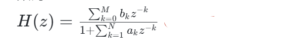 递归结构,计算效率高,但可能因反馈环路不稳定。适用于资源受限的实时系统,传递函数为: