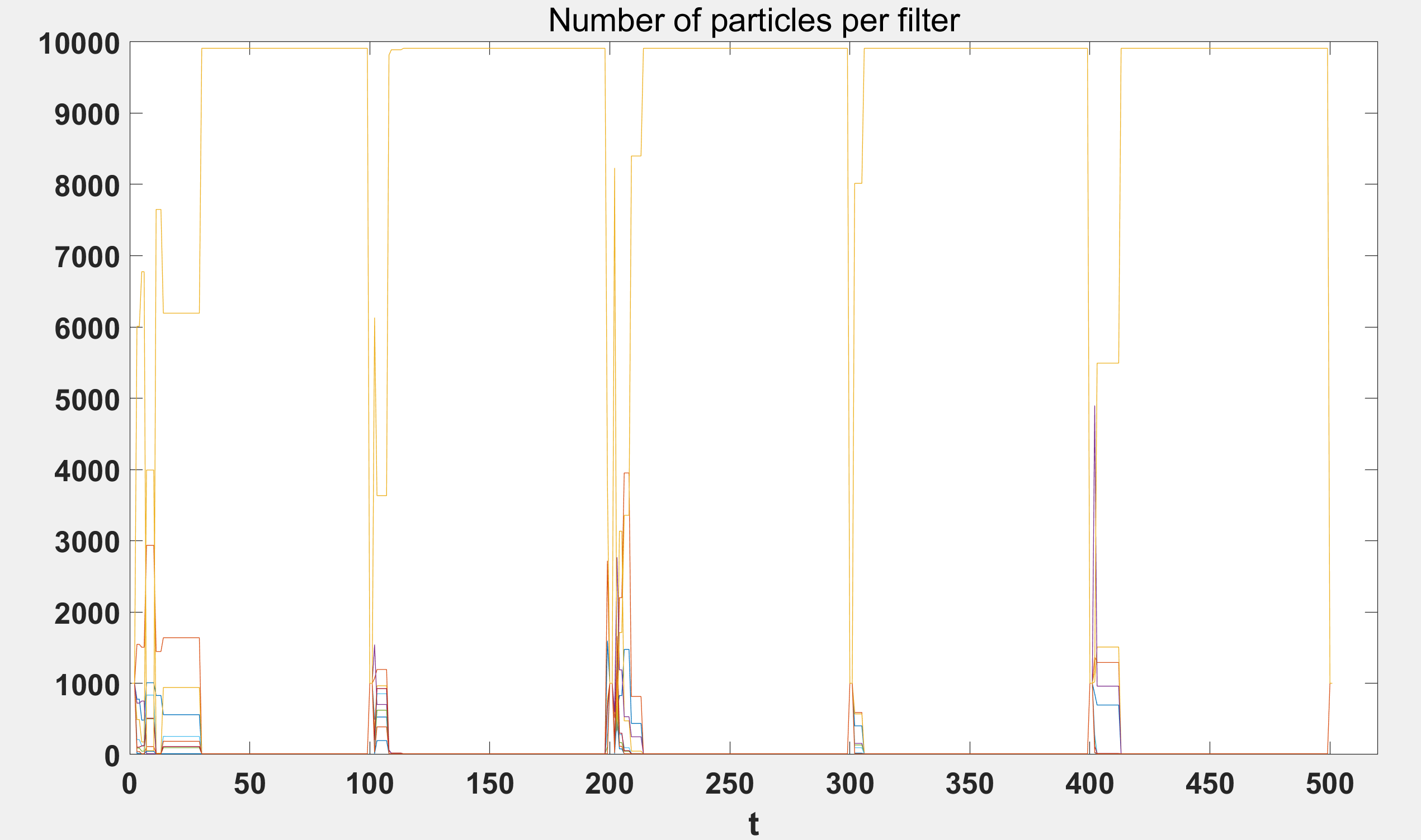 %%% N= total number of particles (fixed; shared by the parallel filters)