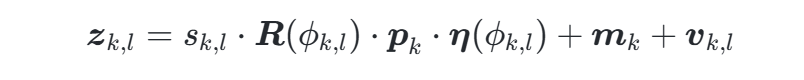 量测生成模型:量测点zk,lzk,l由边界缩放因子sk,l和噪声vk,l生成:
