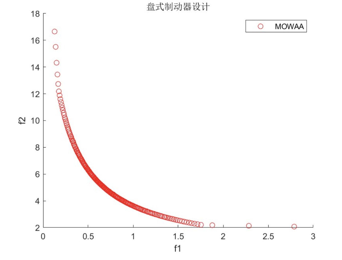 通过MOWAA算法对盘式制动器设计进行优化,得到了满足多项约束条件的Pareto最优解集。与传统的单目标优化方法或经验设计相比,MOWAA算法在解的多样性与最优性上具有显著优势。具体表现在以下几个方面:
