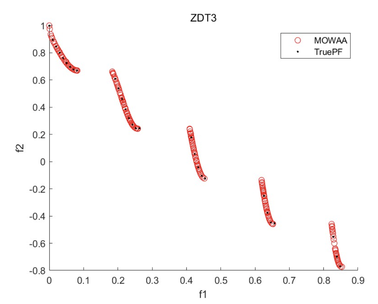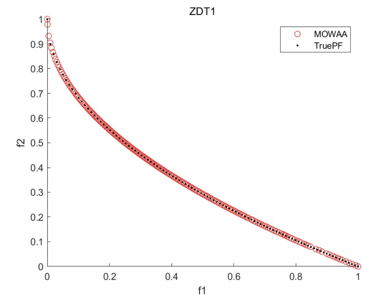 - 适应性:Spread指标显示,MOWAA算法在处理不均匀分布的帕累托前沿(如ZDT6)时,解集分散程度更接近理想值1。