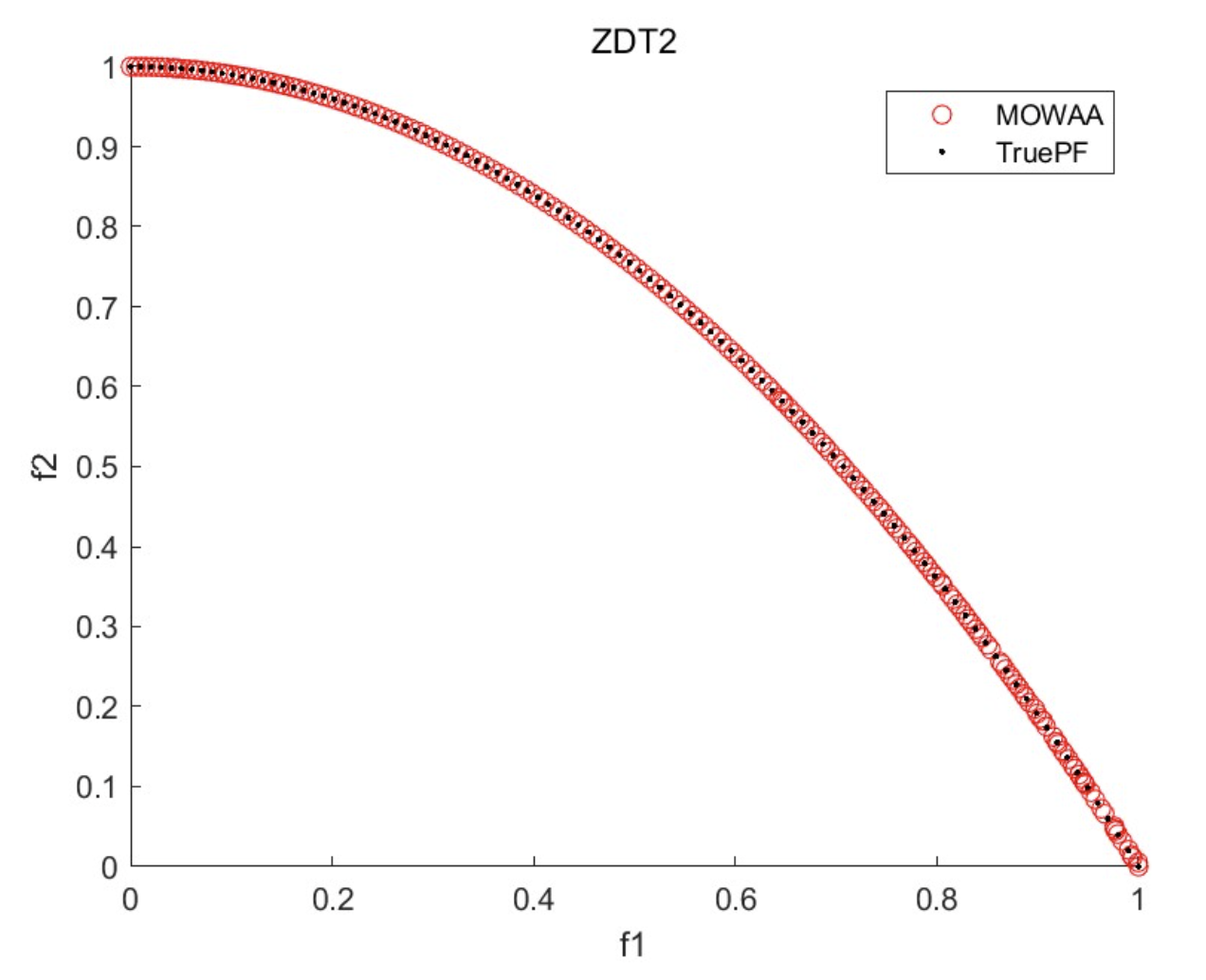 - 多样性:HV与Spacing指标表明,MOWAA算法生成的解集在目标空间中覆盖更广,分布更均匀。例如,在ZDT2测试函数上,MOWAA算法的HV值较NSGA-II提升20%以上。