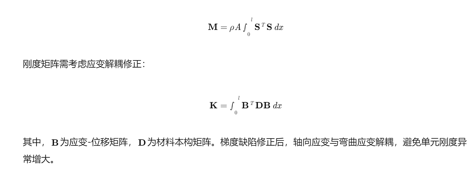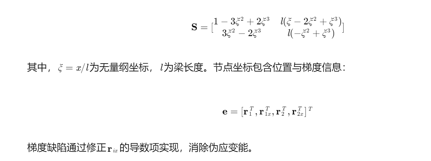 - 梯度缺陷ANCF单元的数学建模:修正传统ANCF单元的应变场描述,解决轴向应变与弯曲应变的耦合问题。