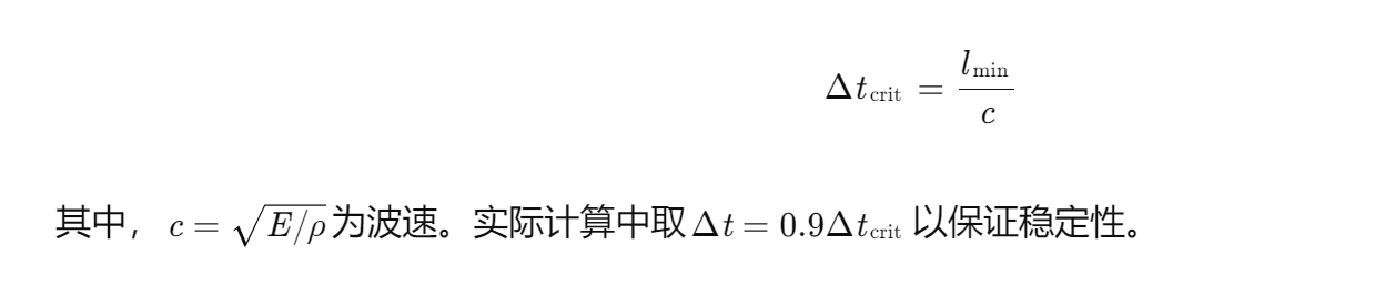 显式算法临界时间步长由单元最小尺寸与波速决定: