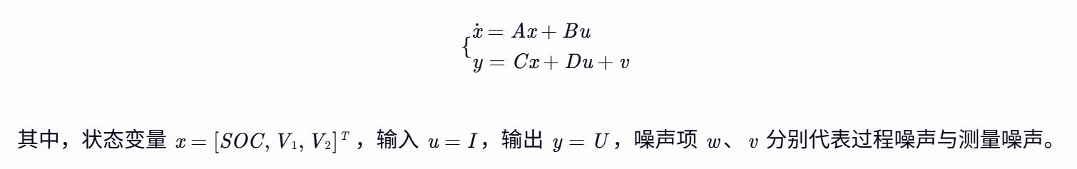 以二阶RC等效电路模型为例,其状态空间方程为: