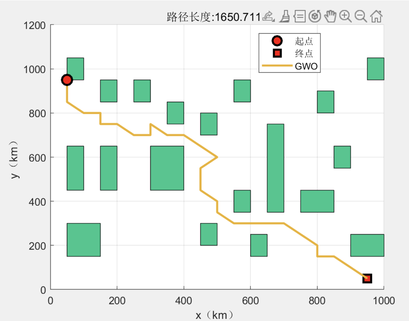 - 动态适应性:动态障碍物出现时,GWO算法通过实时更新适应度函数重新规划路径,耗时2.3秒,而PSO算法需4.5秒。