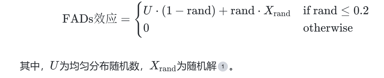 模拟海洋中鱼类聚集装置对捕食者行为的影响,通过随机维度跳跃(概率为20%)避免陷入局部最优,数学表示为: