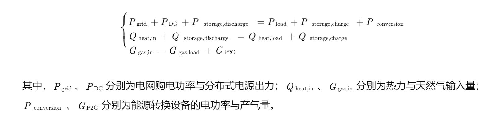 系统需满足电、热、气多能流的实时平衡: