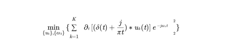 VMD通过构建变分框架将信号分解为K个中心频率模态,其目标函数为: